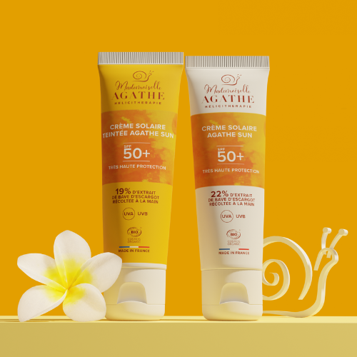 Discover the benefits of snail slime in Agathe Sun products. With its soothing, regenerating and healing properties, our COSMOS certified organic sunscreen offers effective protection against sun damage, without controversial ingredients for your skin or the environment.