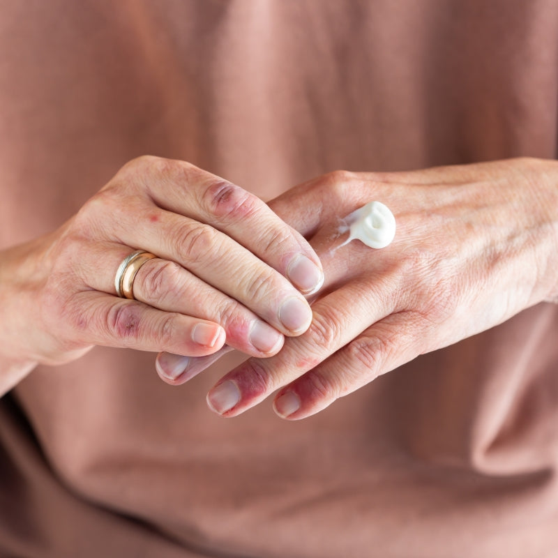 Hands are particularly vulnerable to signs of aging because their skin is thin and less protected than that of the face. Fewer oil glands make this skin more prone to dryness, fine lines and loss of elasticity. As we age, collagen production decreases, leading to sagging skin and the appearance of dark spots, often caused by sun exposure.