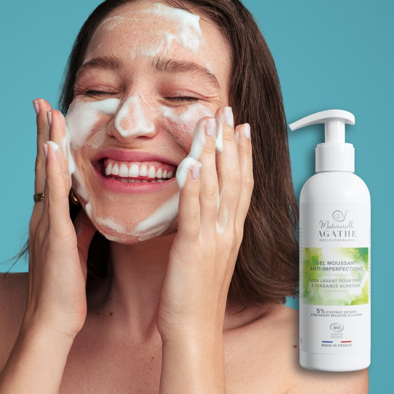 Our anti-blemish foaming gel is your best friend: gentle yet purifying, it rids the skin of impurities without harming it. A good foundation, like a well-cleaned floor before installing a new carpet. But for those who appreciate the sensory contact of a bar of soap, our cold-process soaps are a perfect alternative. Thanks to this artisanal manufacturing method, they retain all the richness of vegetable oils and natural glycerin, providing a deep cleanse while nourishing the skin.