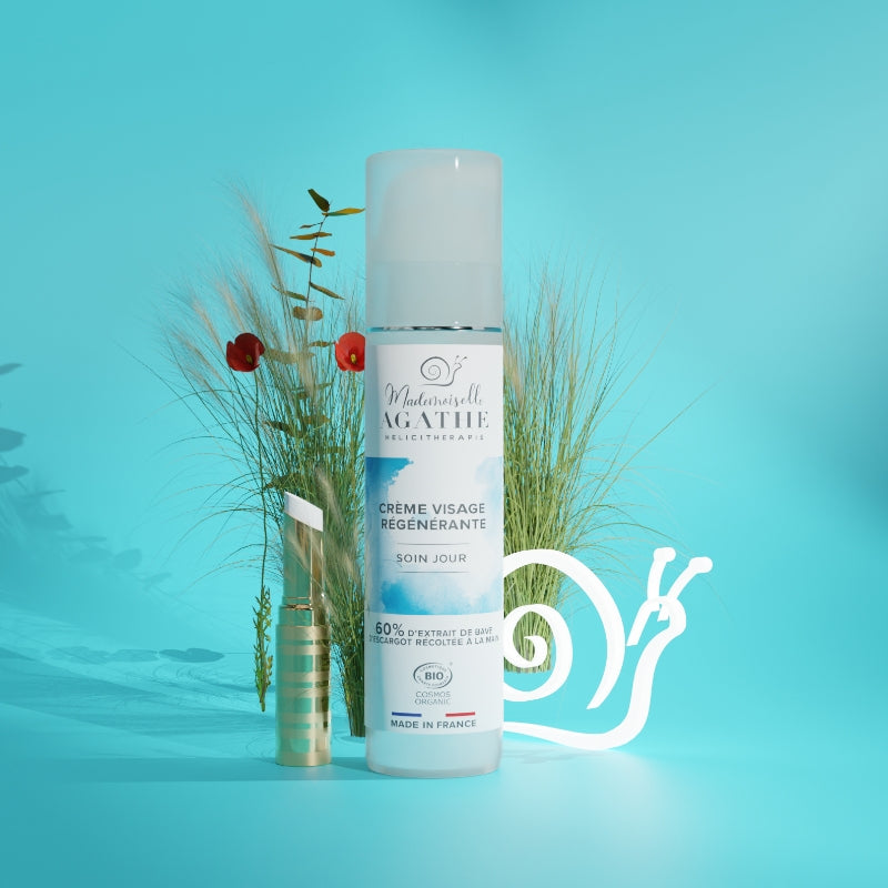 Opt for a light cream, like our regenerating day cream . Its light texture absorbs quickly, deeply hydrates without stickiness, and leaves skin soft and plump. Enriched with snail slime (65%), it boosts cell renewal and maintains skin balance, for radiant and healthy skin.