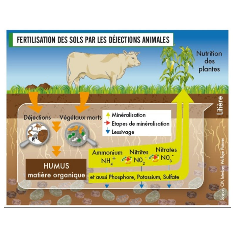 Among the best environmental practices, fertilization, carried out with organic materials directly from the farm such as slurry, manure, compost, etc., allows yields without resorting to chemistry. These fertilizers from livestock improve the structure of the land by increasing the quantity of organic matter and stimulating the activity of soil micro-organisms.
