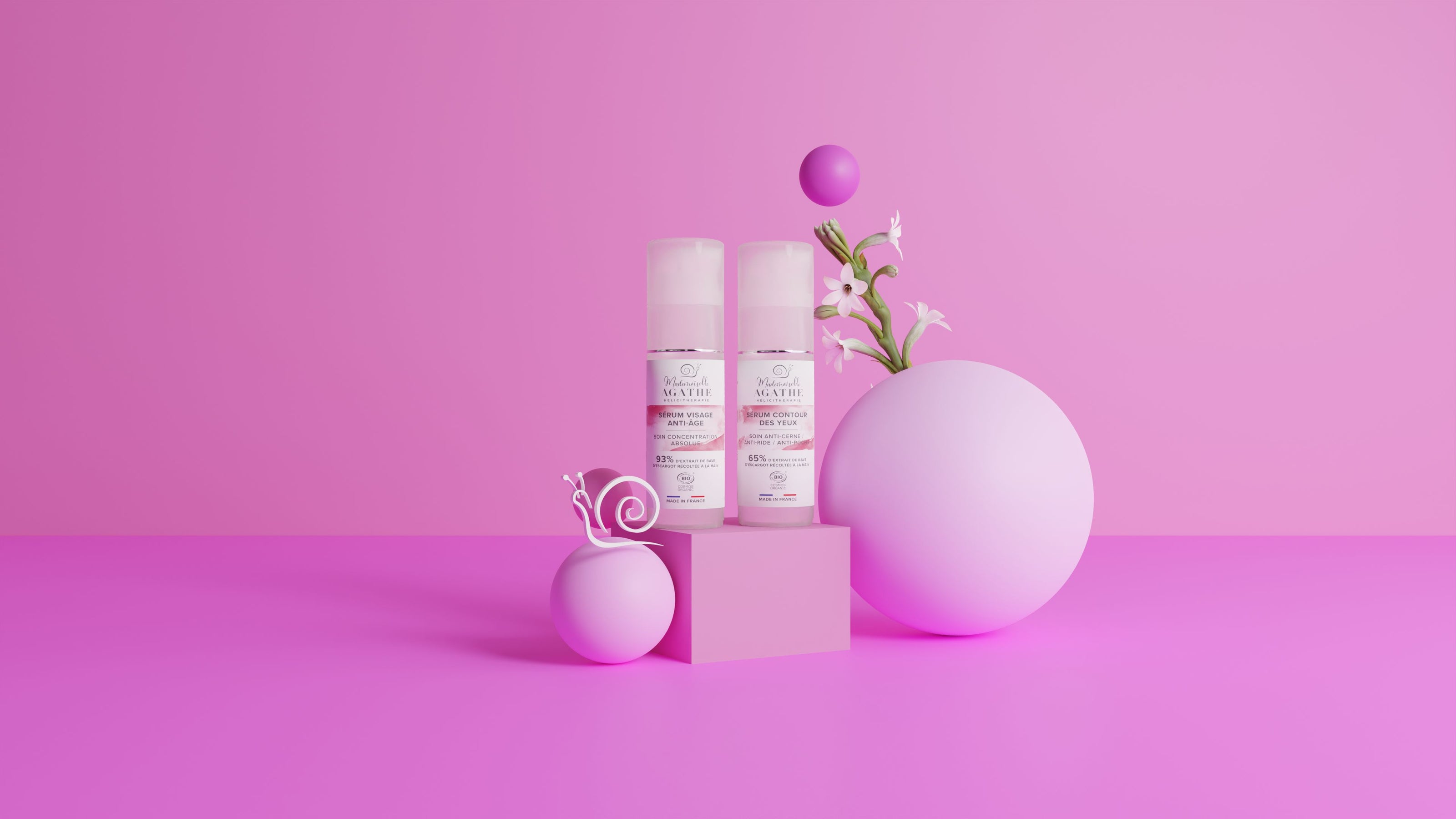 Helicitherapy offers a complete range of cosmetic care products, highly enriched with snail mucus extract, in order to take advantage of all its benefits for the skin. We incorporate the maximum amount of snail mucus extract into our proprietary formulas. Our approach to Helicotherapy is to maximize the benefits of the proteins present in snail mucus for the skin. We achieve this by combining our mucus extract with organic plants, sourced from Pays de la Loire. It is this respectful symbiosis between animal and plant that makes our cosmetic products based on helicotherapy so effective.