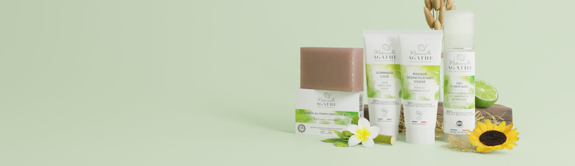 The purifying action of Helicitherapy is boosted by our snail mucus naturally rich in proteins and vitamins which serve as a support for the skin's immune system and thus limit the proliferation of bacteria responsible for acne. These proteins and peptides also have the function of purifying the skin without drying it out and improving all skin disorders linked to acne.