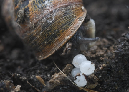 The snail leaves a nutrient-rich mucus that covers the hole where it deposited its spat. Newborns will be able to feed on it during the first days of awakening. This mucus is thicker and very rich in biological macromolecules such as allantoin, glycolic acid and vitamins with the essential function of optimizing spat development.
