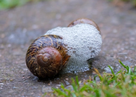 The snail's only means of defense is to curl up in the shell by blowing bubbles in a very liquid foam-like mucus of low protein quality. This mucus has practically no viscosity and is the mucus mainly harvested by the cruel mechanical methods of " disgorging or milking " or also called " Fresh Slime ".