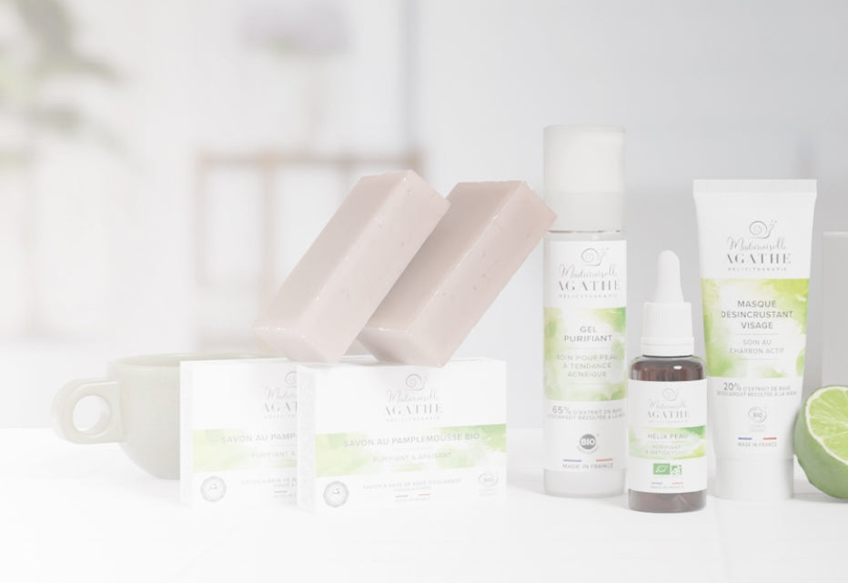 To strengthen your anti-acne routine, we recommend our Hélix Peau 30ml which is a food supplement formulated with snail slime combined with 5 phyto and gemmotherapy plant complexes. It will help to act on skin problems (excretory system, draining action, purifying action etc.). Take 40 drops per day (about 2 pipettes) under the tongue or in a little water, for 21 days.