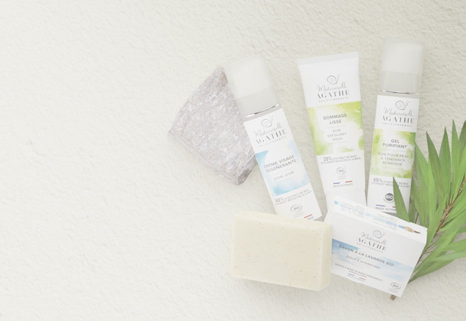 First, opt for organic lavender cold process soap . This natural superfat is ideal for washing your skin and above all hydrating it while preserving its hydrolipidic film thanks to our snail slime combined with shea butter, olive oil, coconut oil as well as inclusions of lavender flowers which support lavandin oil. without preservatives or any synthetic substances. This soap is perfect for deep cleansing while respecting the specificities of each area for balanced skin.