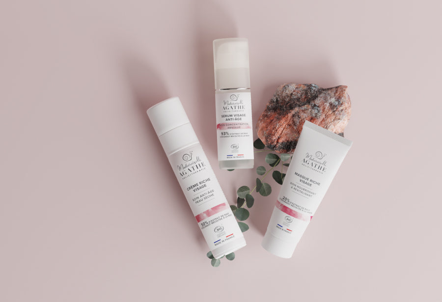 Then, our 50ml rich face cream , soothing and intensely rich, transforms and nourishes the driest and most sensitive skins. Immediately, tightness decreases and your skin is softer for the whole day, even in winter. We also advise you to adopt our anti-aging eye contour serum with proven effectiveness on wrinkles, fine lines, puffiness and dark circles around the eye area.